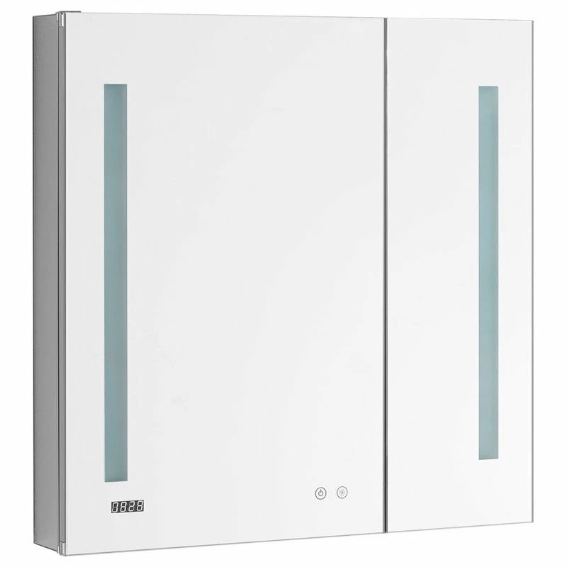 LIGHTS YOUR WAY: The integrated, touch screen control panel allows you to switch on/off the dim-able LED lighting mechanism anytime. A defogger is also included; keep your mirror clear and check your reflection without any hassle. 3D LED color temperature lights on the cabinets (cool light, warm light, and combination of cool and warm mixed).