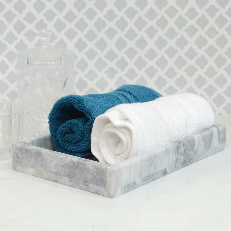 New ๐ Bello Treasure Polished Marble Bathroom Tray, Cloud Gray โ