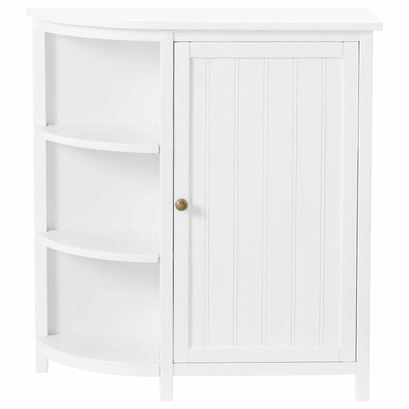 This collection brings space saving storage to your bathroom. The classic design compliments almost any bathroom decor. Wood construction with a white, painted finish, these pieces are designed for both style and functionality. Store toiletries, stacked washcloths, rolled towels or anything you need to keep organized. This 27″ wide stand alone storage cabinet with shelving features two adjustable shelves inside the cabinet and two adjustable shelves on the side of the cabinet. This bath cabinet is perfect for your powder room, guest bath or master suite. Bath collection is moisture resistant.