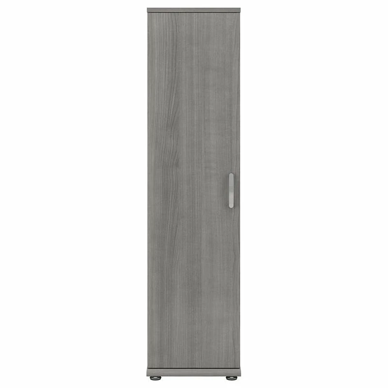 The Bush Business Furniture Universal Narrow Linen Tower with Door and Shelves features a commercial quality design that’s built to last and provides ample room for organization. Store laundry detergent and supplies along with spare sheets, towels and more inside a practical utility cabinet that promises to maintain its contemporary style throughout years of reliable use. The door opens on smooth Euro-style hinges to reveal one fixed shelf and two adjustable shelves for flexible storage. Each shelf supports up to 35 pounds, so storing larger materials is no problem. The freestanding floor cabinet’s base includes adjustable levelers to compensate for uneven surfaces and wall attachment hardware is included for family-friendly safety. This tall laundry cabinet has been meticulously tested to meet or exceed ANSI/BIFMA standards for safety and performance and is backed by a 10 Year Warranty.