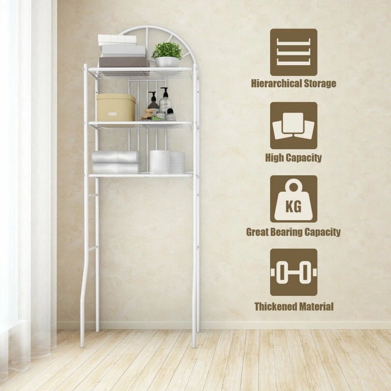This is our brand new 3-tier bathroom shelf, which is a perfect furniture to decor your bathroom without sacrificing valuable floor space. This shelving unit utilizes the wasted storage area above the toilet for maximum space efficiency. Made of high-quality powder-coated iron pipe, this storage shelf is sturdy and anti-corrosion and provides years of sturdy and reliable use. It features 3 shelves, which can each hold up to 17 pounds so you have plenty of room for necessary items like towels, toi&let &paper and more. Don’t hesitate to add it to your cart!