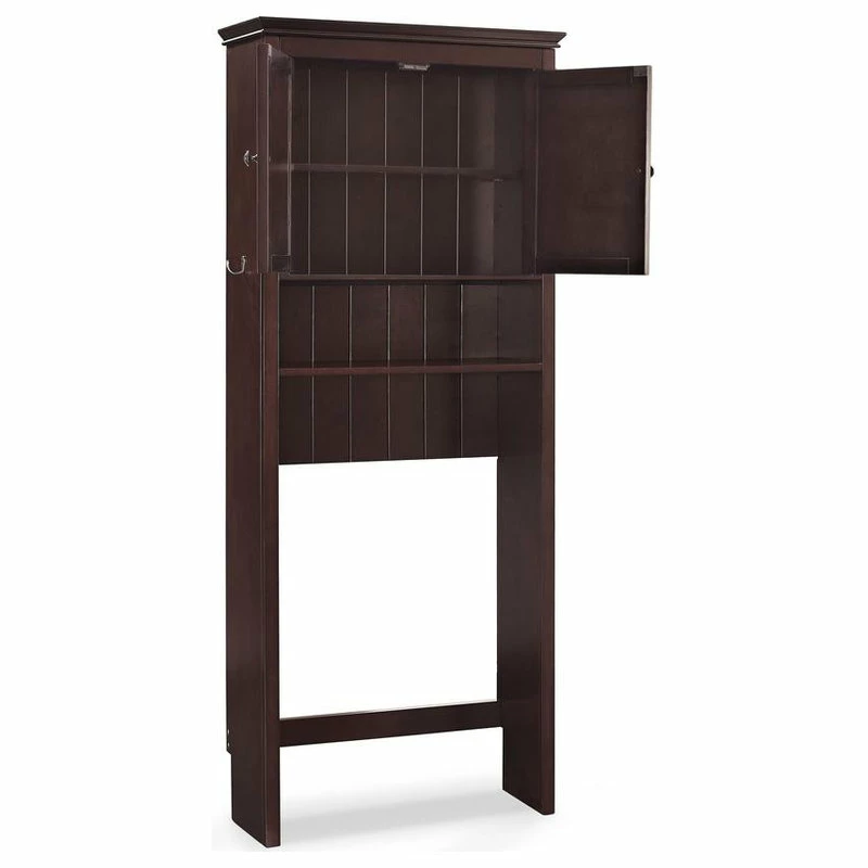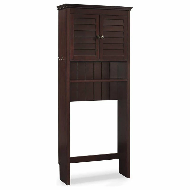 When it comes to storage, no space in the home creates as much challenge as the bathroom. Since they aren’t really “living spaces”, most baths are small, and require creativity when it comes to creating room for odds and ends . Let Crosley ease the burden with the new Lydia space saver cabinet. Designed specifically to fit in the rarely used space around the toilet tank, our space saver offers a number of clever storage features. Oft – used items sit at the ready on a spacious open shelf, and clutter neatly disappears inside a large louvered cabinet. There are even handy towel hooks on each side, perfect for hand or bath towels.