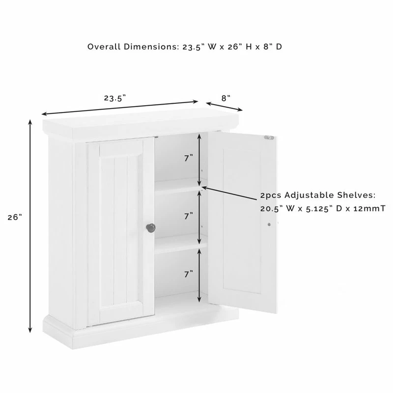 A perfect storage solution for any bathroom, the Seaside Wall Cabinet delivers organization with coastal cottage style. Behind the beadboard paneled doors are two adjustable shelves, sized perfectly for small bath items and toiletries. Keeping clutter neatly hidden, the Seaside Wall Cabinet will be a welcome addition to your bathroom space.