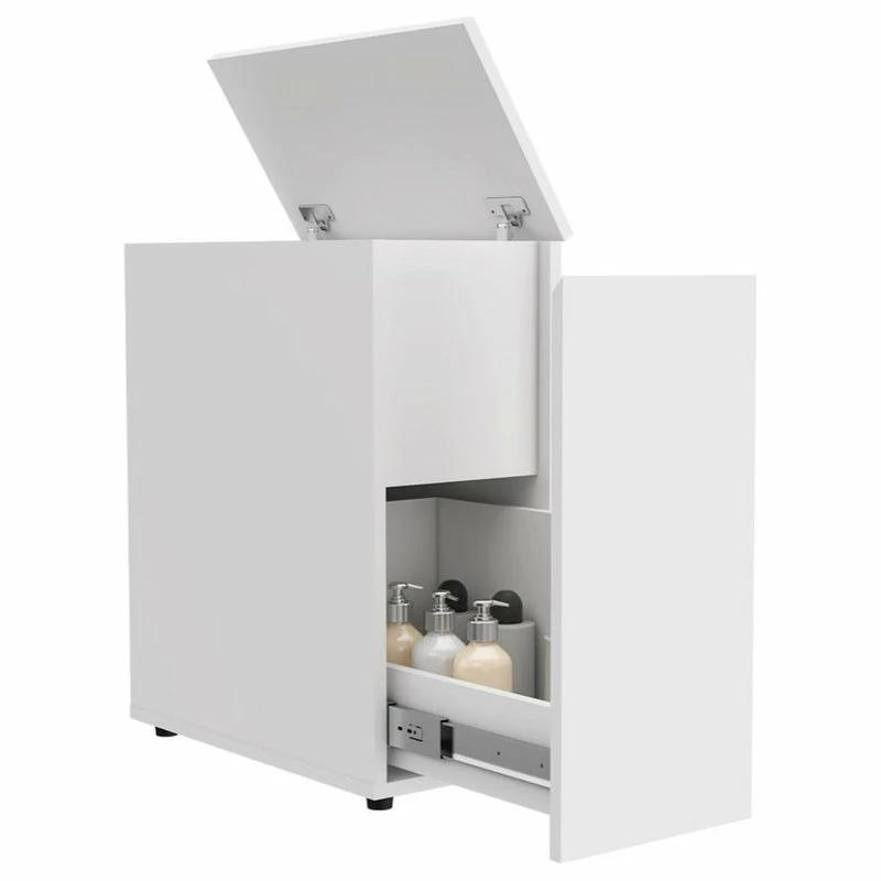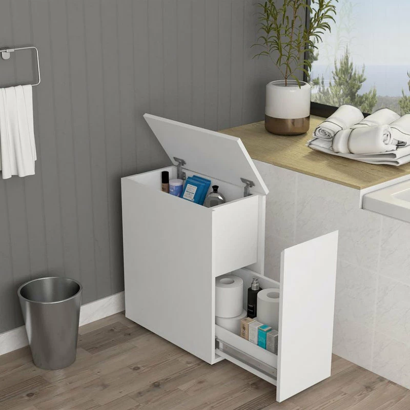 The Nova Bathroom Storage is a multifunctional slim storage piece designed for narrow spaces in any room, it comes with a bottom drawer and a top cabinet perfect for organizing and storing your toiletries, towels, crafts, plants, tools, groceries.The Nova Storage is suitable for any room that needs some extra storage and space saving piece ( 10.2W x 20.2D x 23.5H ), its made of high quality engineered wood which makes it sturdy and durable.