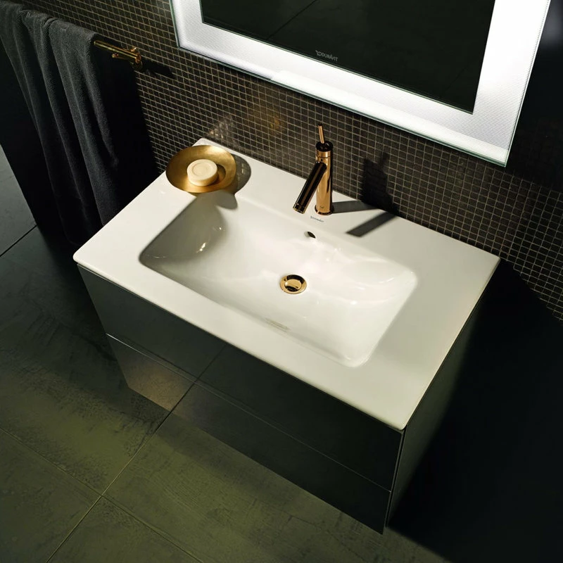 Included Components: Ceramic vanity top with a single basin sink and matching backsplash (cabinet sold separately) Duravit 233663-1HOLE Features: Covered under Duravit’s 5 year warranty Vanity is constructed of ceramic Vanity top includes an integrated style bathroom sink Features a single rectangular basin sink Rear drain location increases available space under the sink Equipped with an overflow drain to help prevent spillage Mounting hardware included Complies with ADA standards Duravit 233663-1HOLE Technologies and Benefits: WonderGliss: The WonderGliss coating that is baked into the ceramic doesnβt give grime a chance: dirt and limescale cannot secure a hold on the smooth surface, so residue runs off more easily with the water. Sanitary ceramics featuring WonderGliss stay smooth and clear Duravit 233663-1HOLE Specifications: Width: 24-3/4″ (left to right edge) Height: 7-1/8″ (top to bottom) Vanity Top Depth: 19-1/4″ (from front edge to back edge) Number of Basins: 1 Basin Width: 11-3/8″ (back inner rim to the front inner rim) Basin Length: 18-7/8″ (from left inner rim to right inner rim) Basin Depth: 5-1/8″ (bottom of basin to rim) Number of Faucet Holes: 1