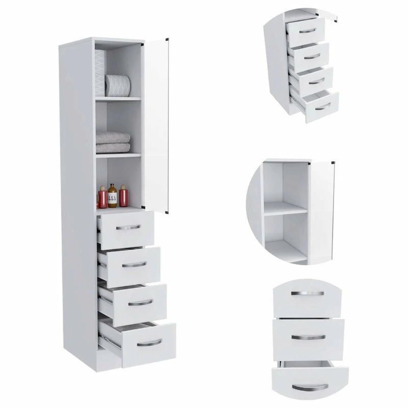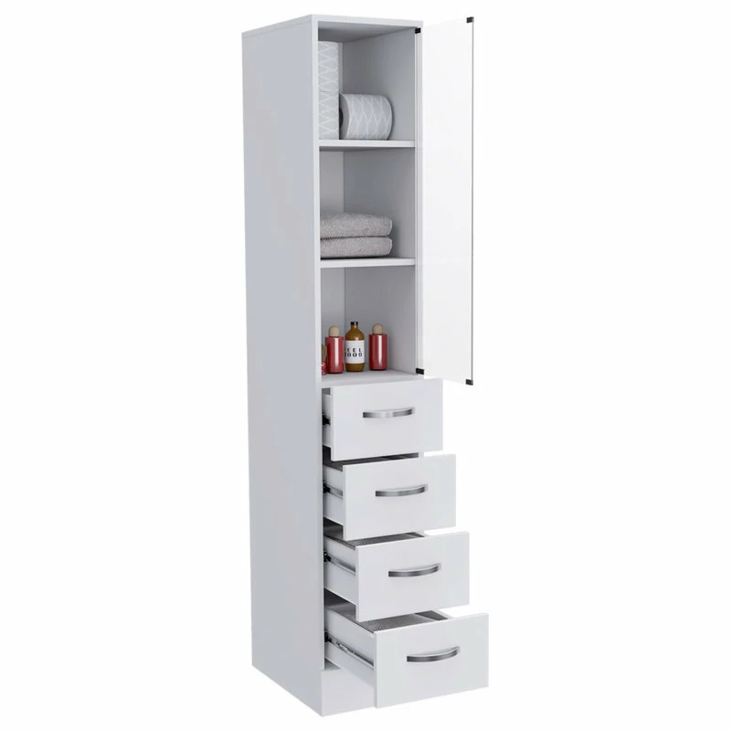 The Preston Linen Cabinet is manufactured with treated engineered wood to protect it from the regular exposure to water and humidity found in a bathroom in a White finish.