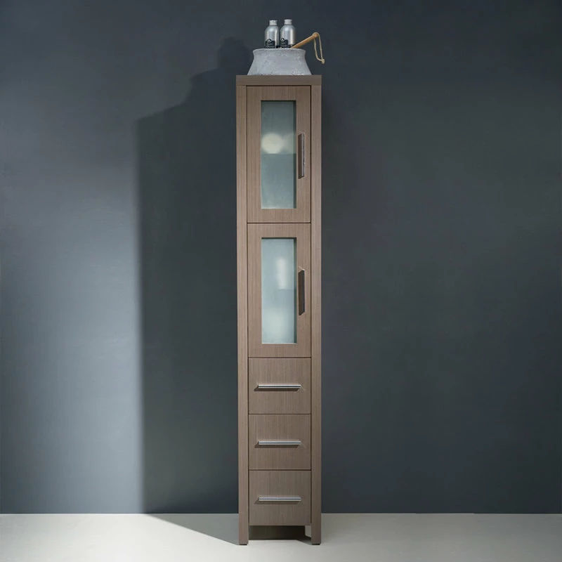 The Fresca Torino Tall Bathroom Linen Cabinet is not only a perfect addition to any Fresca Torino vanity ensemble, but it also works very well as a stand alone unit. The cabinet is made from a high quality veneer with frosted glass on the 2 doors.