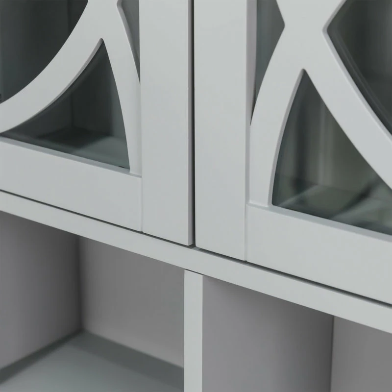 The gray finish and metal pulls provide a modern element to the design. Crown molding on the top of the unit gives it a graceful style that will go with most any decor. It can improve your storage space. The High grade MDF is incredibly dense and strong, making it more sound in construction and longer lasting.