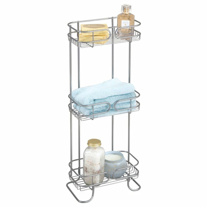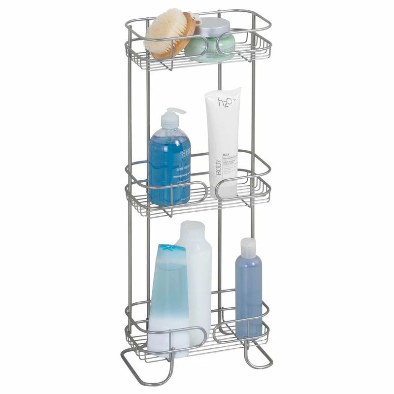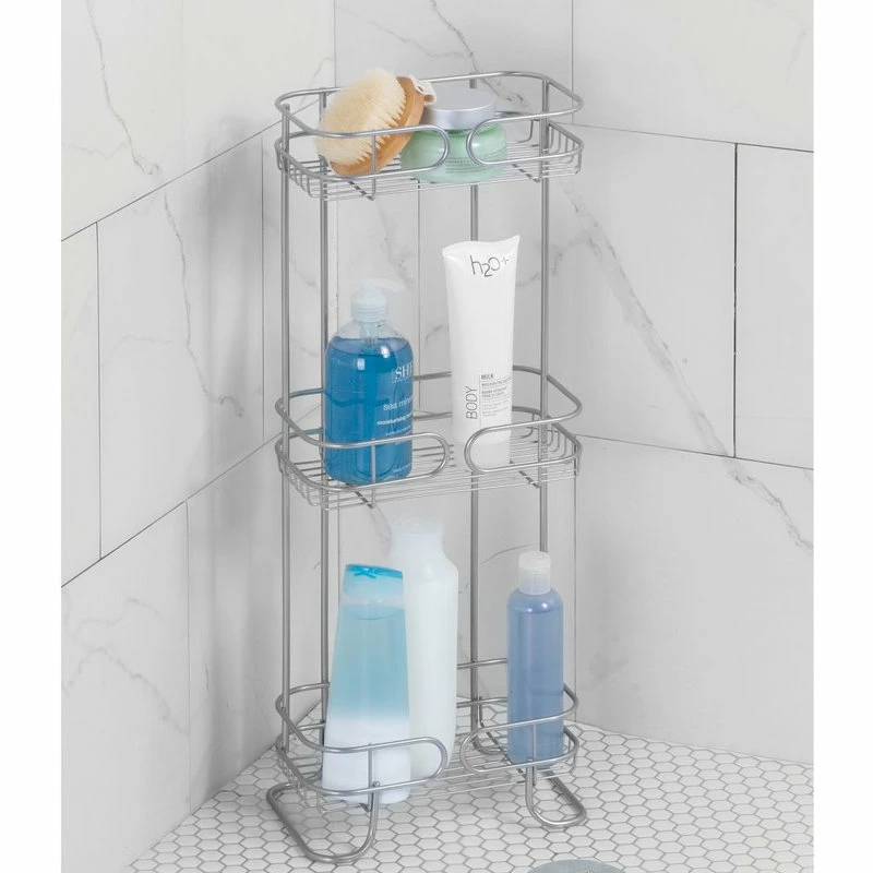 Organize your shower with the iDesign Neo Tower Shower Organizer! This rectangular rack is placed directly in your shower for additional storage. The rust-resistant silver finish adds a classic look and will stay looking new for years of quality use. Designed with three space-saving layers, you will no longer have to bend over to pick up shower supplies off the floor! The metal wire racks allow for water drainage while storing your shampoos, soap, and other bath items. A strong base assures that your items stay in place off the floor. Measuring 6.3″ x 9.8″ x 26.1″, you are sure to have space for all of your bath time necessities in the iDesign Neo Shower Caddy.