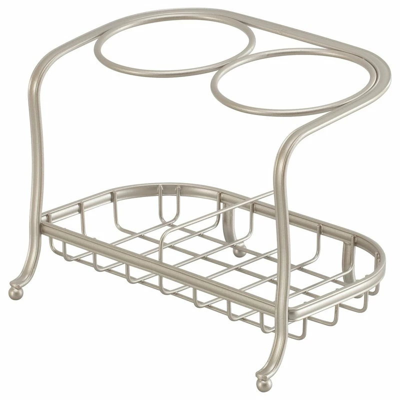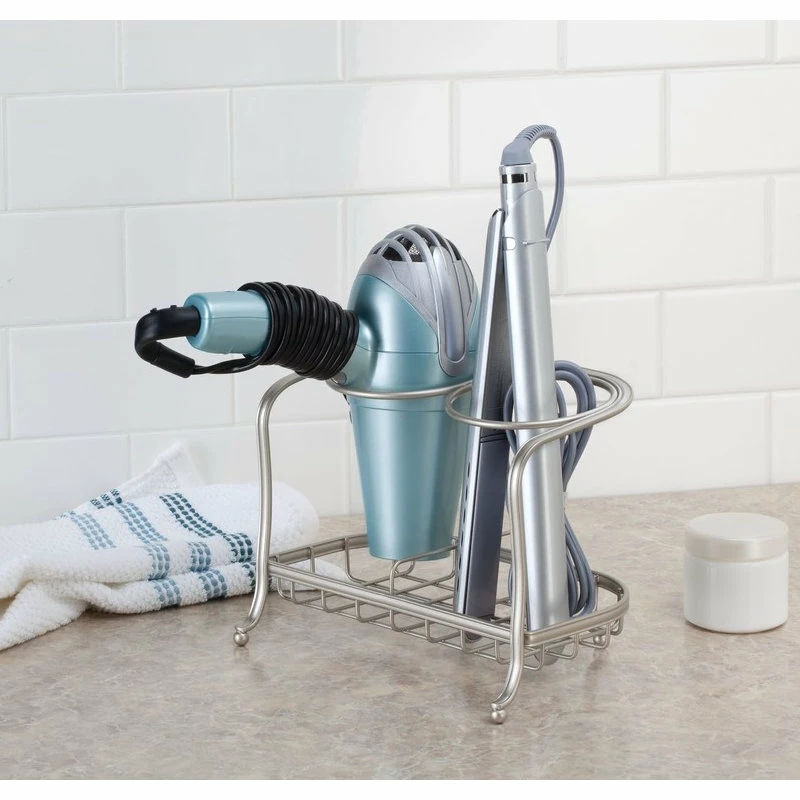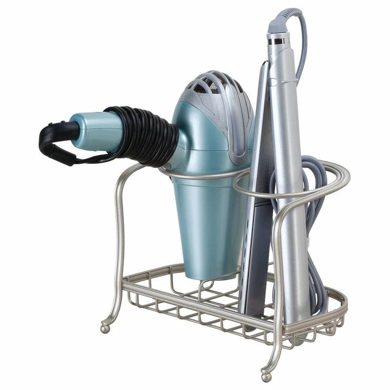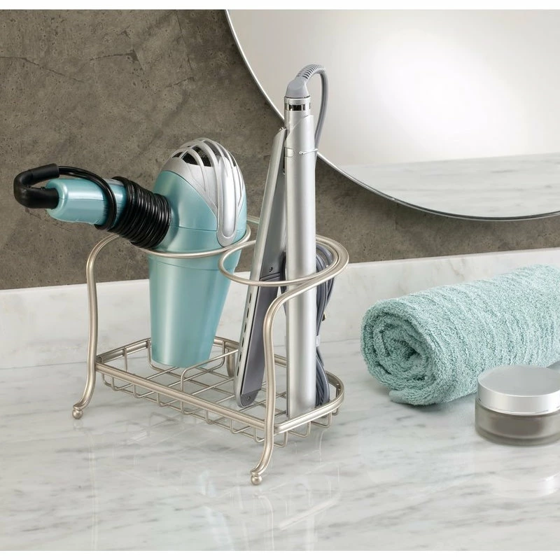 iDesign’s York Lyra collection brings elegant organization to your bathroom vanity. The bathroom organizer sits on any countertop for easy organization. With a steel frame, this Hair Dryer & Flat Iron Holder keeps your styling tools ready to use! The satin finish matches a variety of bathroom decor styles. Measures 8.75″ x 6.25″ x 7″ to fit in compact spaces