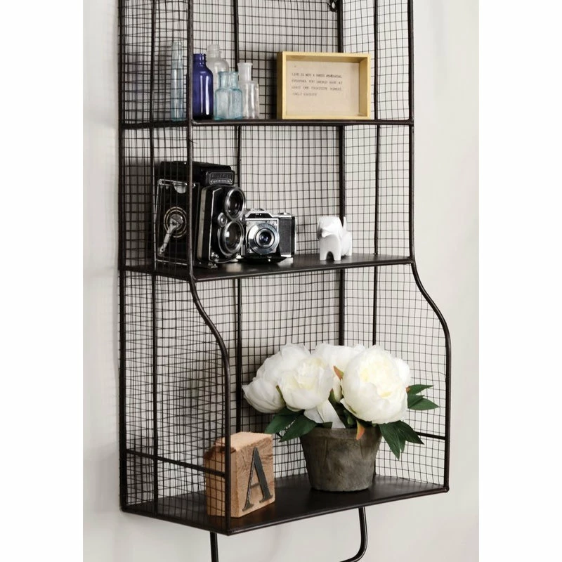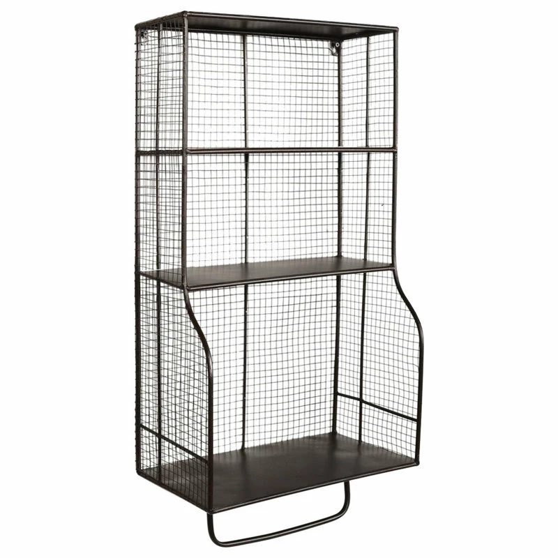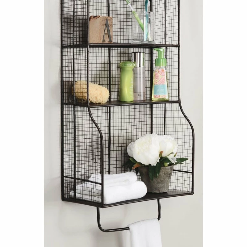 Add stylish storage to a bathroom, kitchen, office or entry with the Distressed Wall Storage Organizer. The rustic distressed grid style metal will easily complement any decor style. Three shelves provide ample space for storing and displaying a variety of items. A bottom bar is perfect for hanging towels. A versatile storage addition for any area.