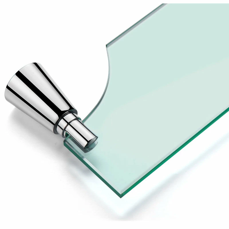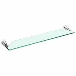 The modern stylings of the Soma collection glass shelf is unmatched. With its long cylindrical features and clean angles this contemporary piece in polished chrome will work perfectly in a modern bathroom. Constructed of high quality solid brass with easy to install mounting brackets. Complete your room with the full Soma collection.