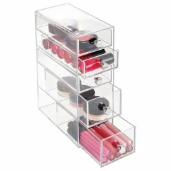 New 😍 InterDesign 36560 2.75″ X 7″ X 10″ Clear Clarity 4-Drawer Cosmetic Flip Tower 🔥