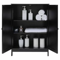 Best Sale 🛒 Imtinanz Black Bathroom Floor Storage Cabinet With 2 Shelf 🎁