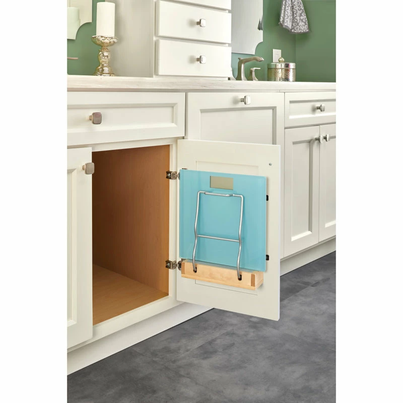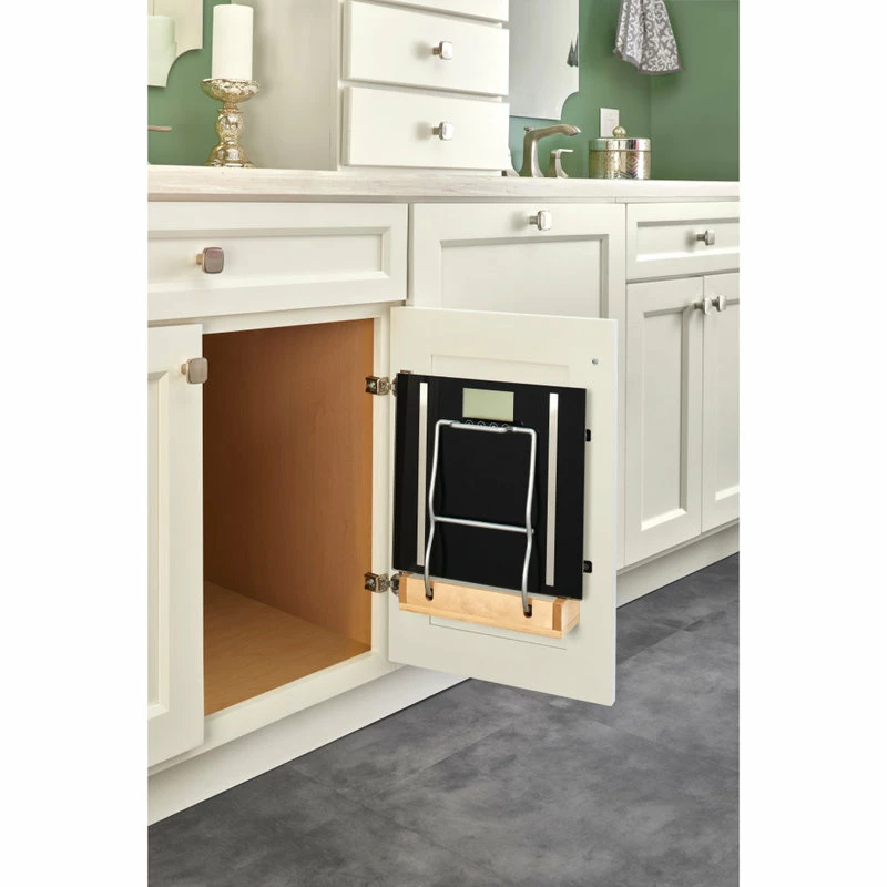 What you hate about scales? Picking them up to clean, tripping over them and of course their honesty. Ok we can’t help with everything but with Rev-A-Shelf’s scale holder two out of three isn’t bad. This door mounted storage rack allows you to store your scale off the floor and securely inside of your cabinet.