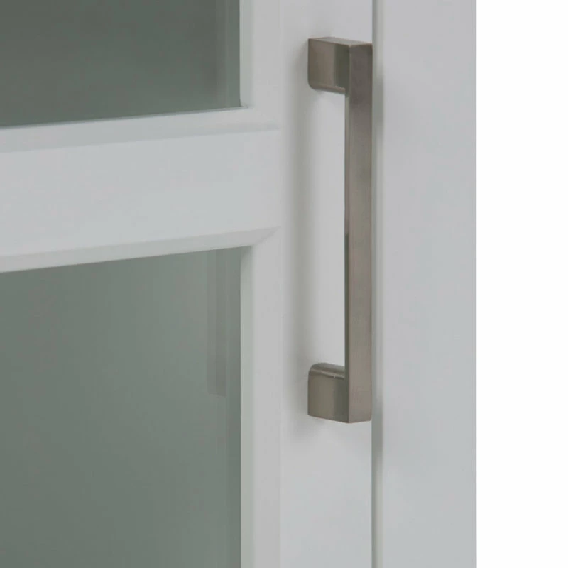 - Features one (1) door with one (1) adjustable interior shelf and one (1) open shelf. Contemporary Brushed Nickel handles