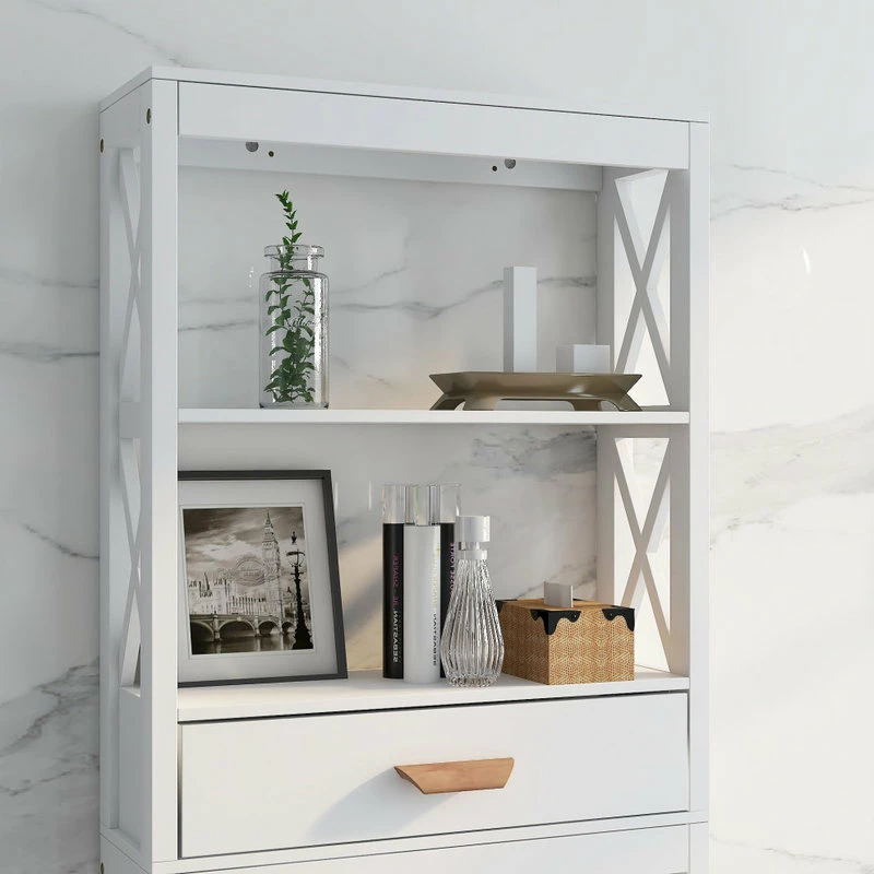 Bathroom Space Saver:One drawer and two open shelves to allow storage of bath essentials like soaps, shampoos, body wash and bath towel, toiletries, toilet seat.