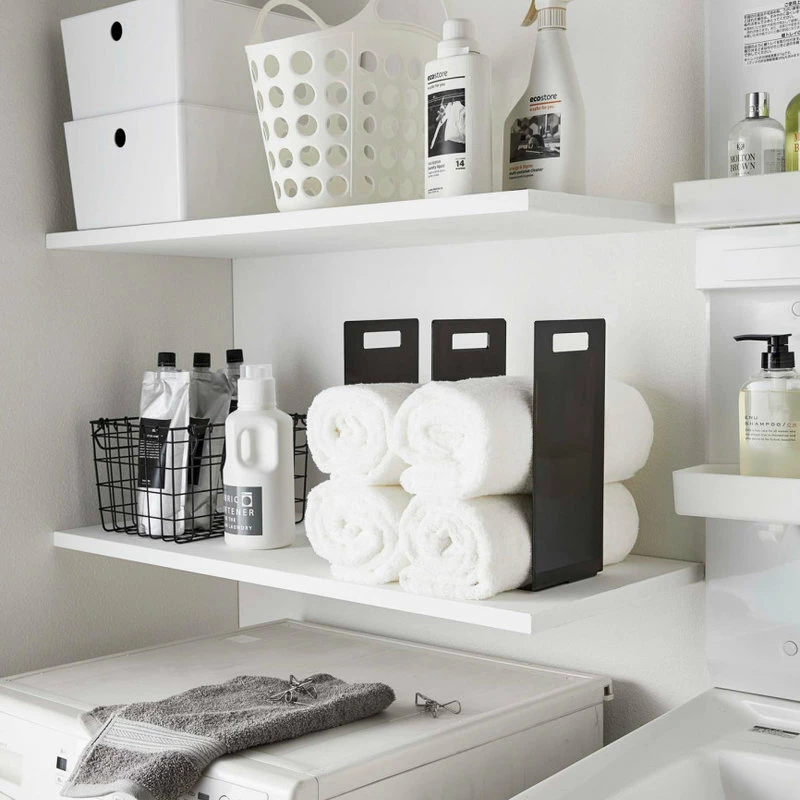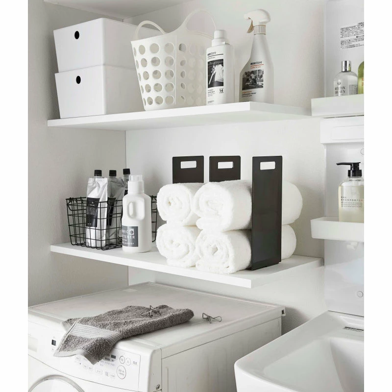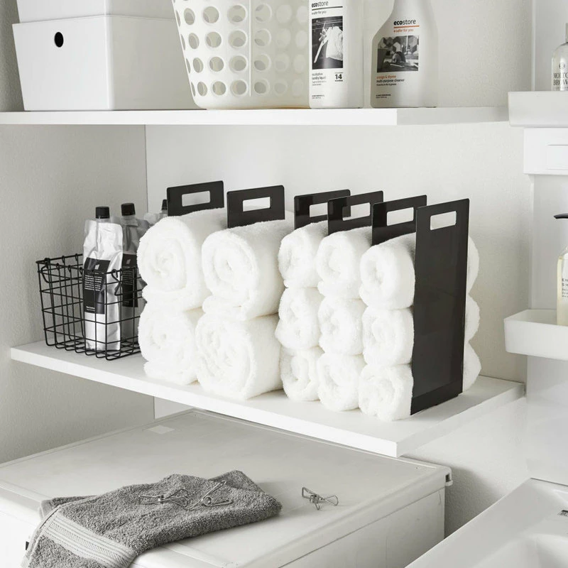 There’s no need for these minimalist, durable dividers to wrap around your shelves. Simply slide the units to lock them together, creating two or three sections. The weighty steel frame keeps them upright and balanced. Easily store and stack an assortment of towels with no fear of them toppling over.