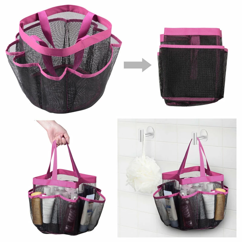 - 8 Storage Pockets – Aquaterior 8″Lx7″Wx3″H Mesh Shower Caddy features 8 storages, including 7 side pockets and 1 central compartment; Different storages for organizing and sorting to keep things in order, large size for shampoo, conditioner, small size for razors or toothbrush
