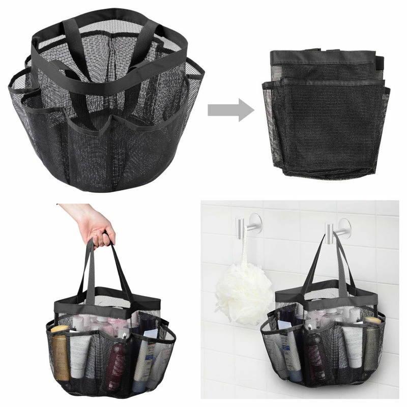 - 8 Storage Pockets – Aquaterior 8″Lx7″Wx3″H Mesh Shower Caddy features 8 storages, including 7 side pockets and 1 central compartment; Different storages for organizing and sorting to keep things in order, large size for shampoo, conditioner, small size for razors or toothbrush